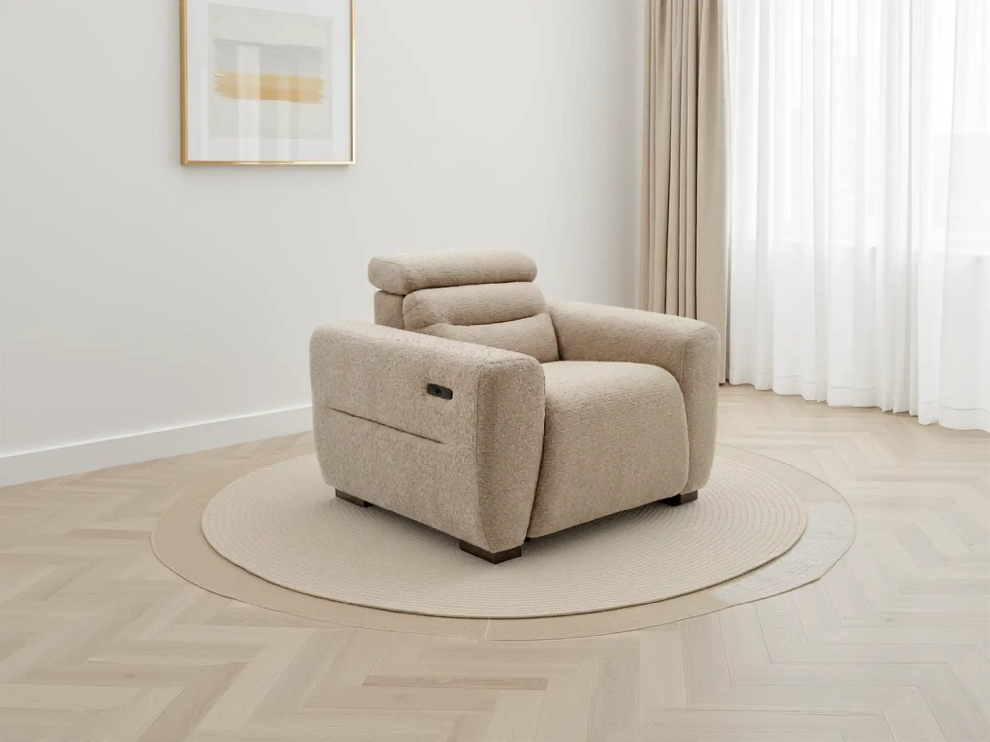 Modern Electric Reclining Armchair in Beige