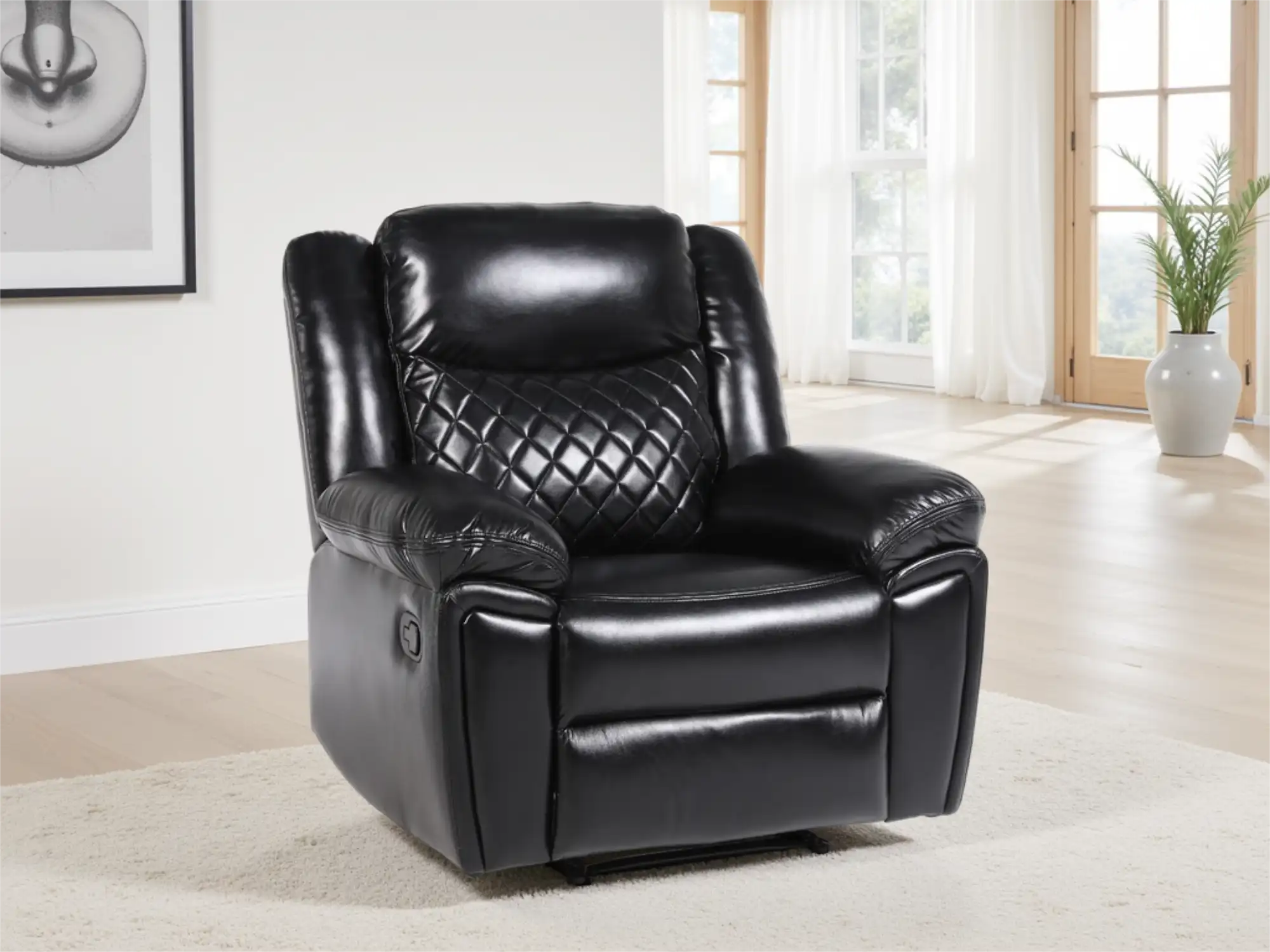 Luxury Manual Reclining Armchair in Black Leather Air