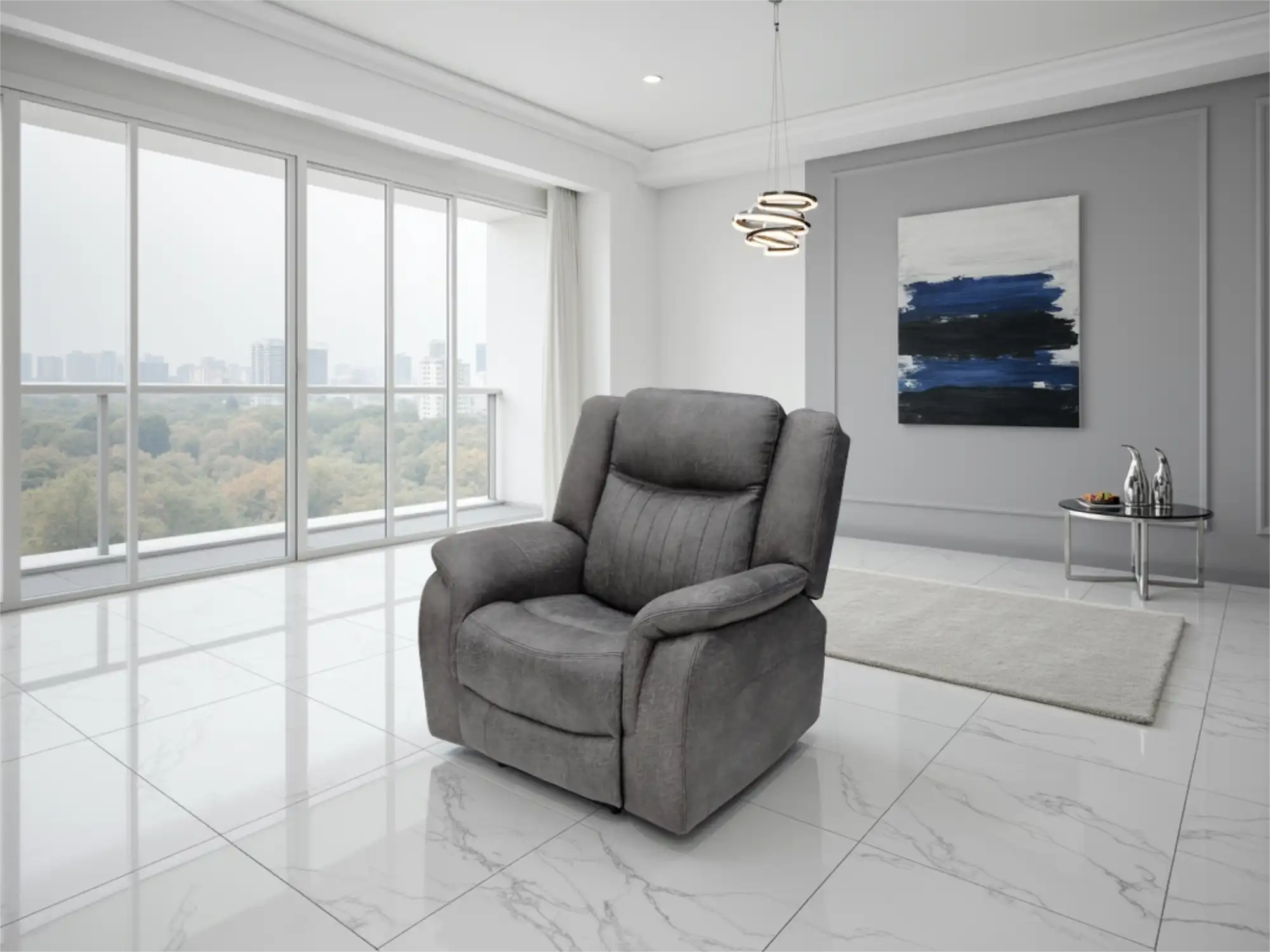 Modern Grey Fabric Electric Reclining Armchair