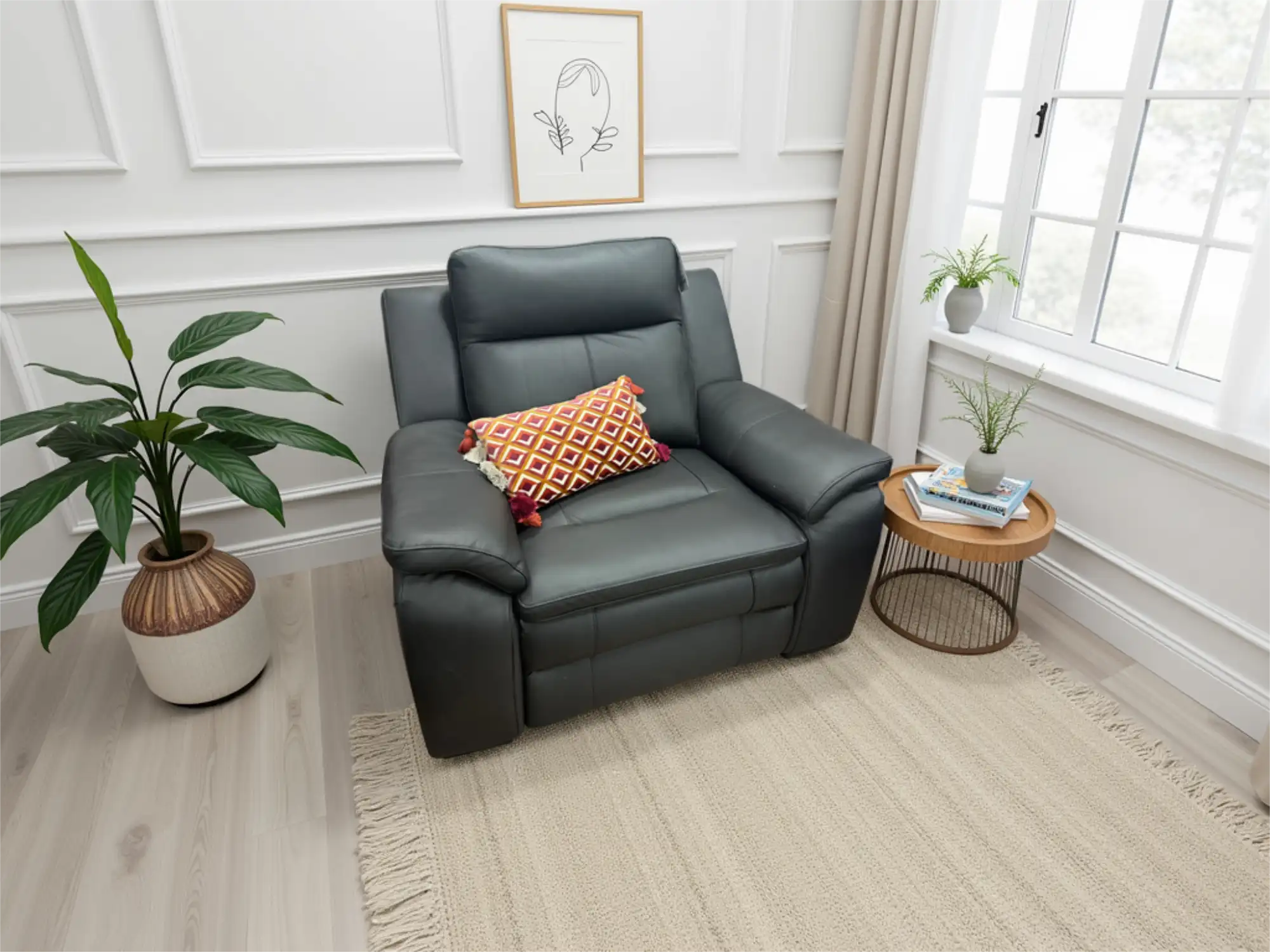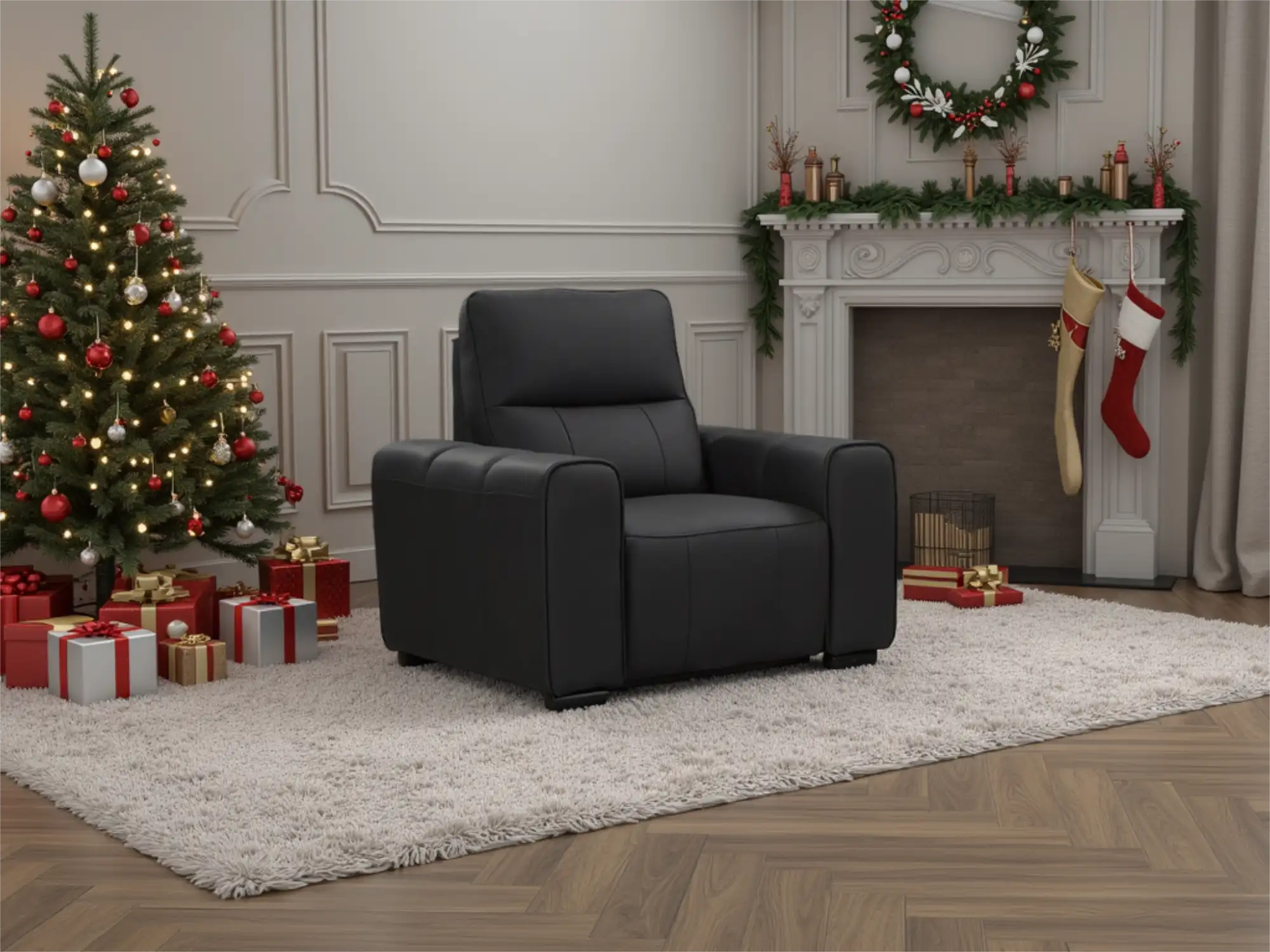 Premium Black Leather Electric Reclining Armchair