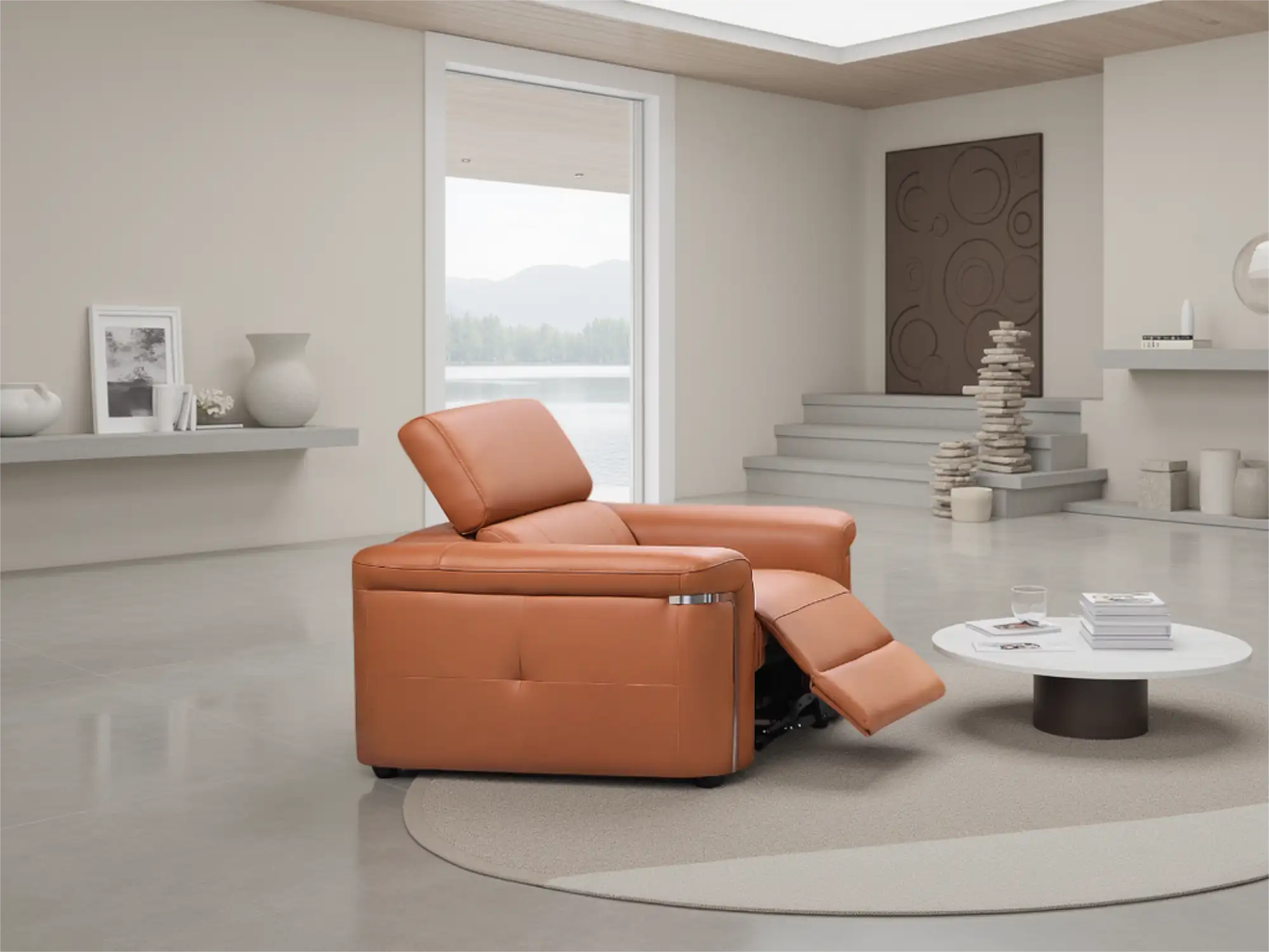Premium Electric Reclining Leather Armchair in Tan