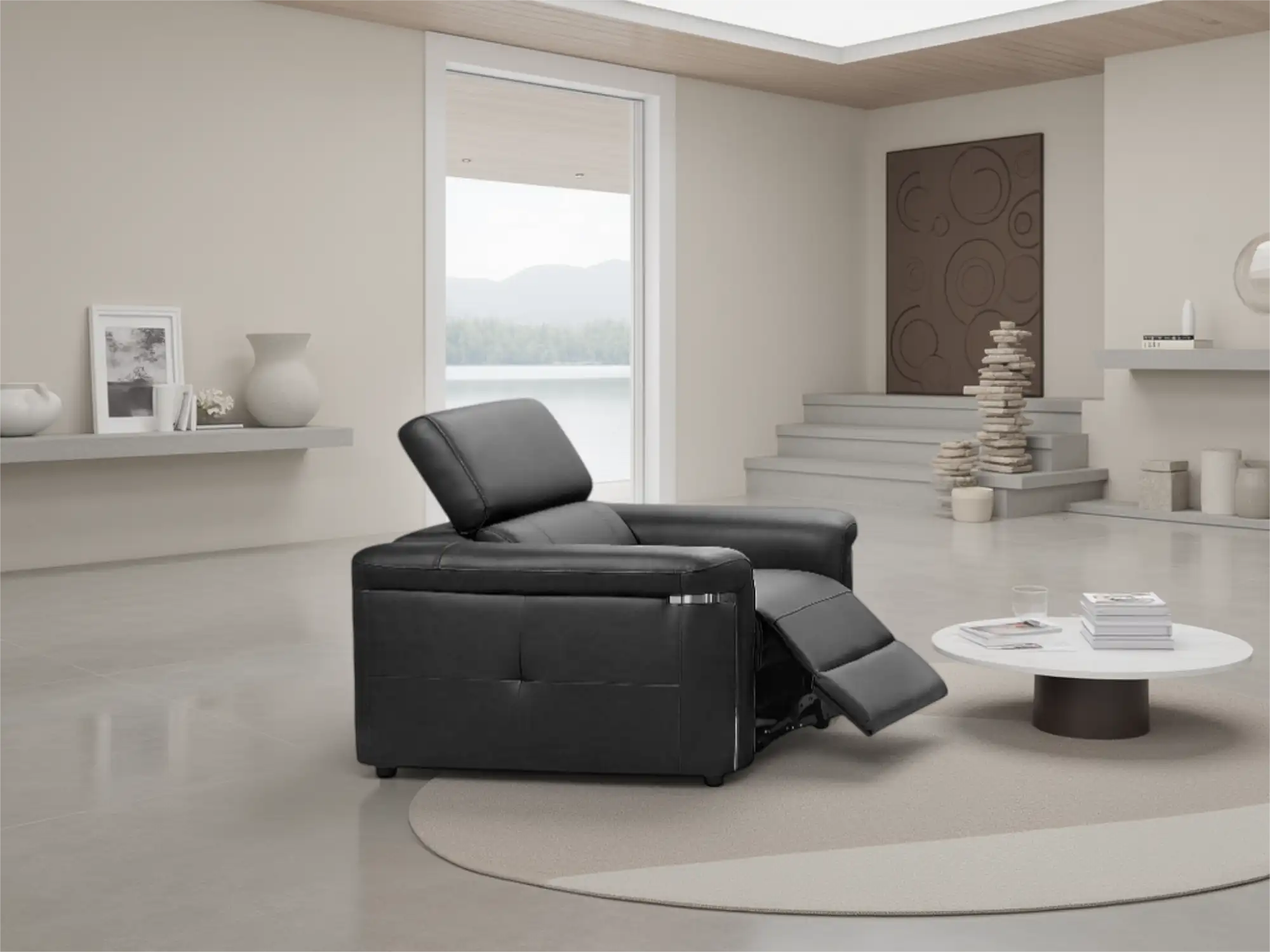 Premium Electric Reclining Armchair in Black Leather