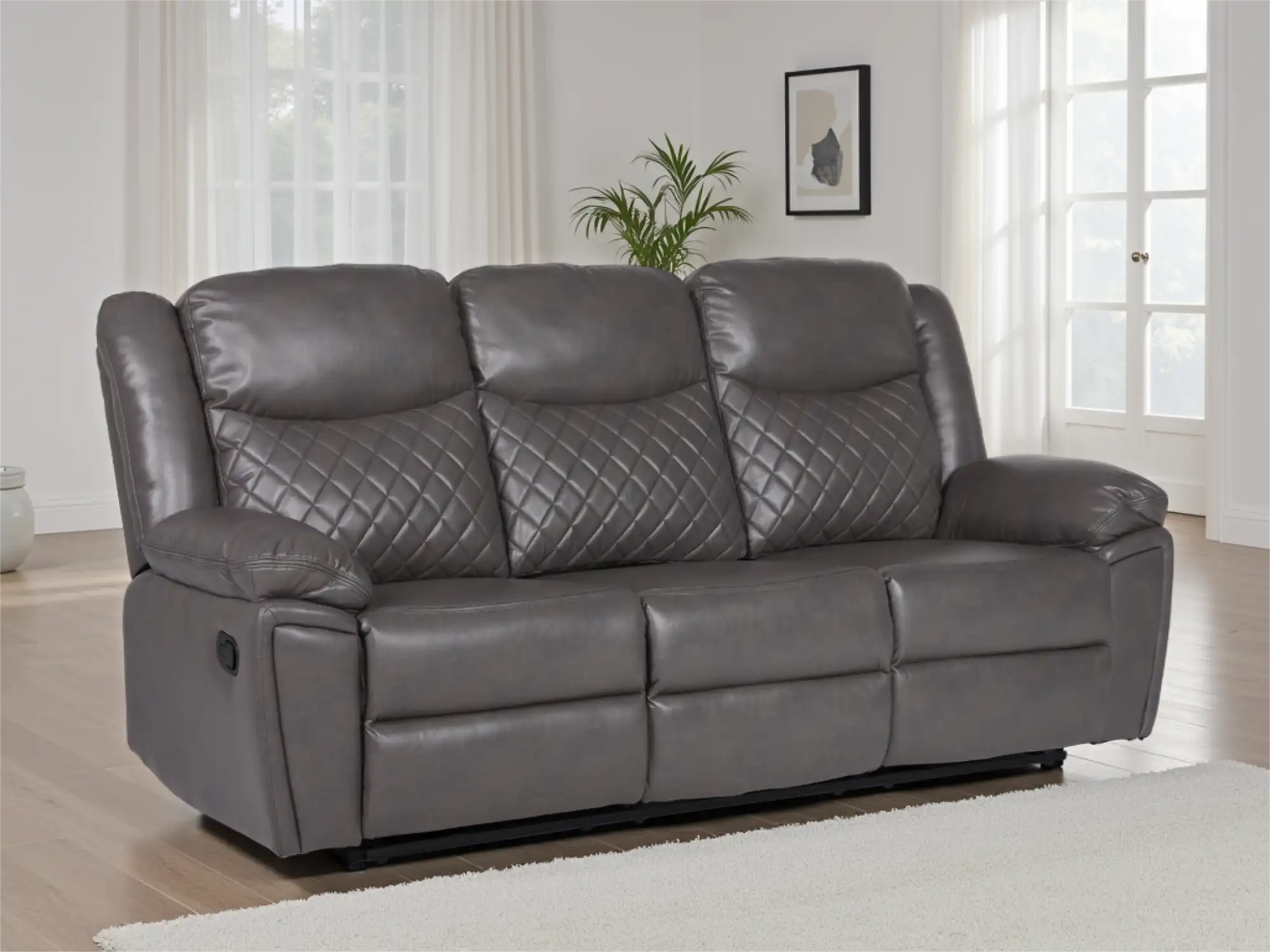 Elegant 3-Seater Manual Recliner Sofa in Grey Faux Leather