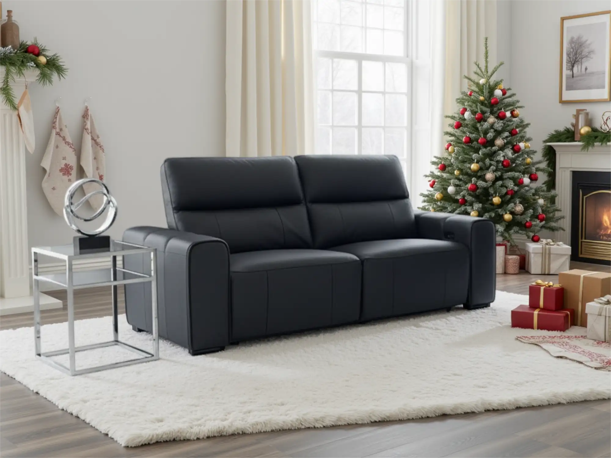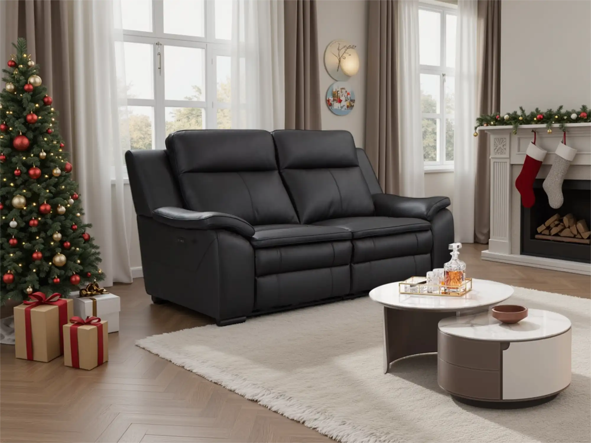 Premium 2-Seater Electric Leather Recliner with Integrated Tech in Black