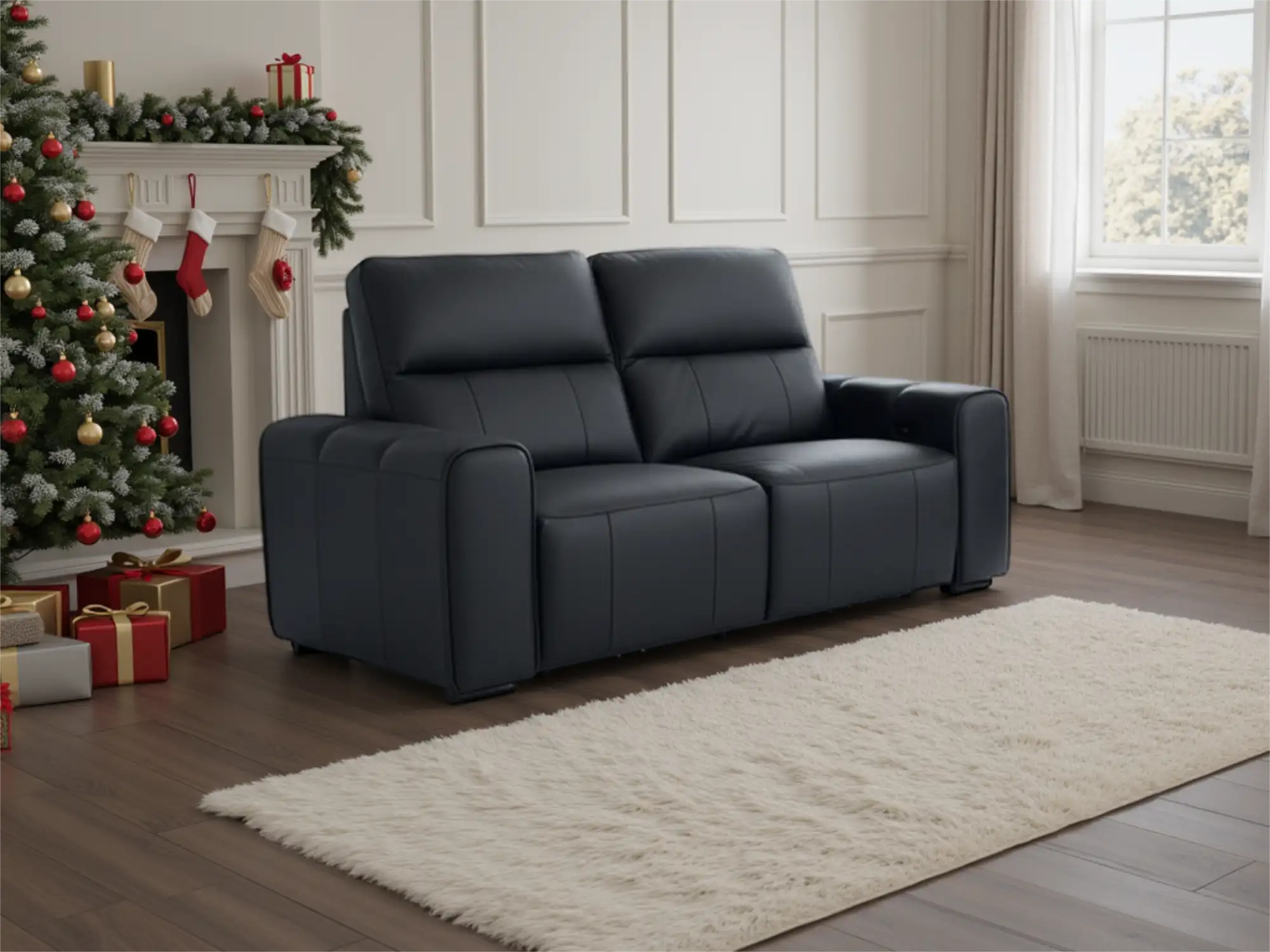 Premium 2-Seater Electric Recliner Sofa in Black Genuine Leather