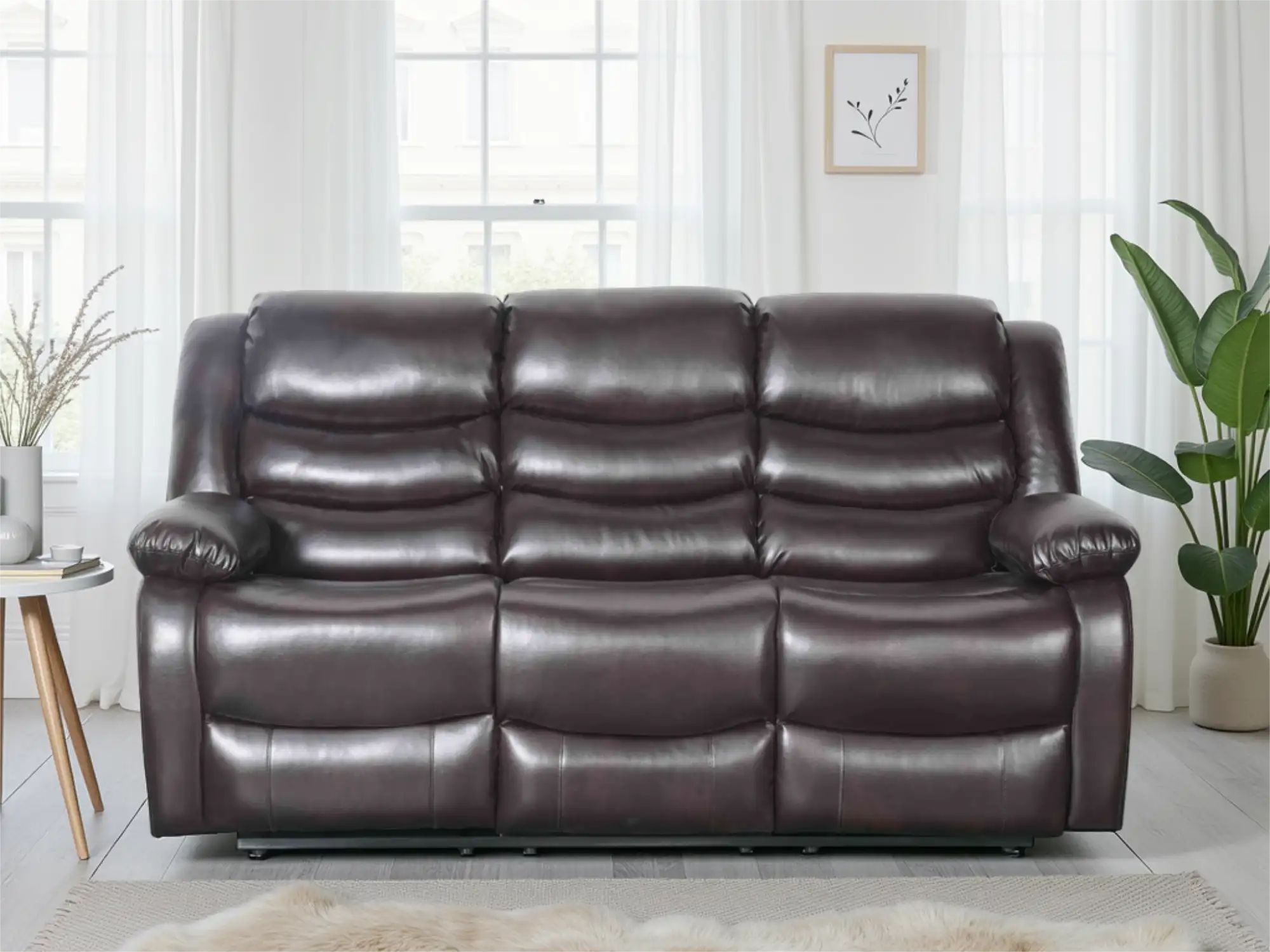 Sophisticated 3-Seater Manual Recliner Sofa in Brown Bonded Leather